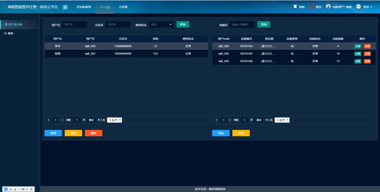 戶(hù)表設置:一戶(hù)多表,統一扣費,方便系統用戶(hù)繳費充值,可對任意一塊表具進(jìn)行分合閘操作。
